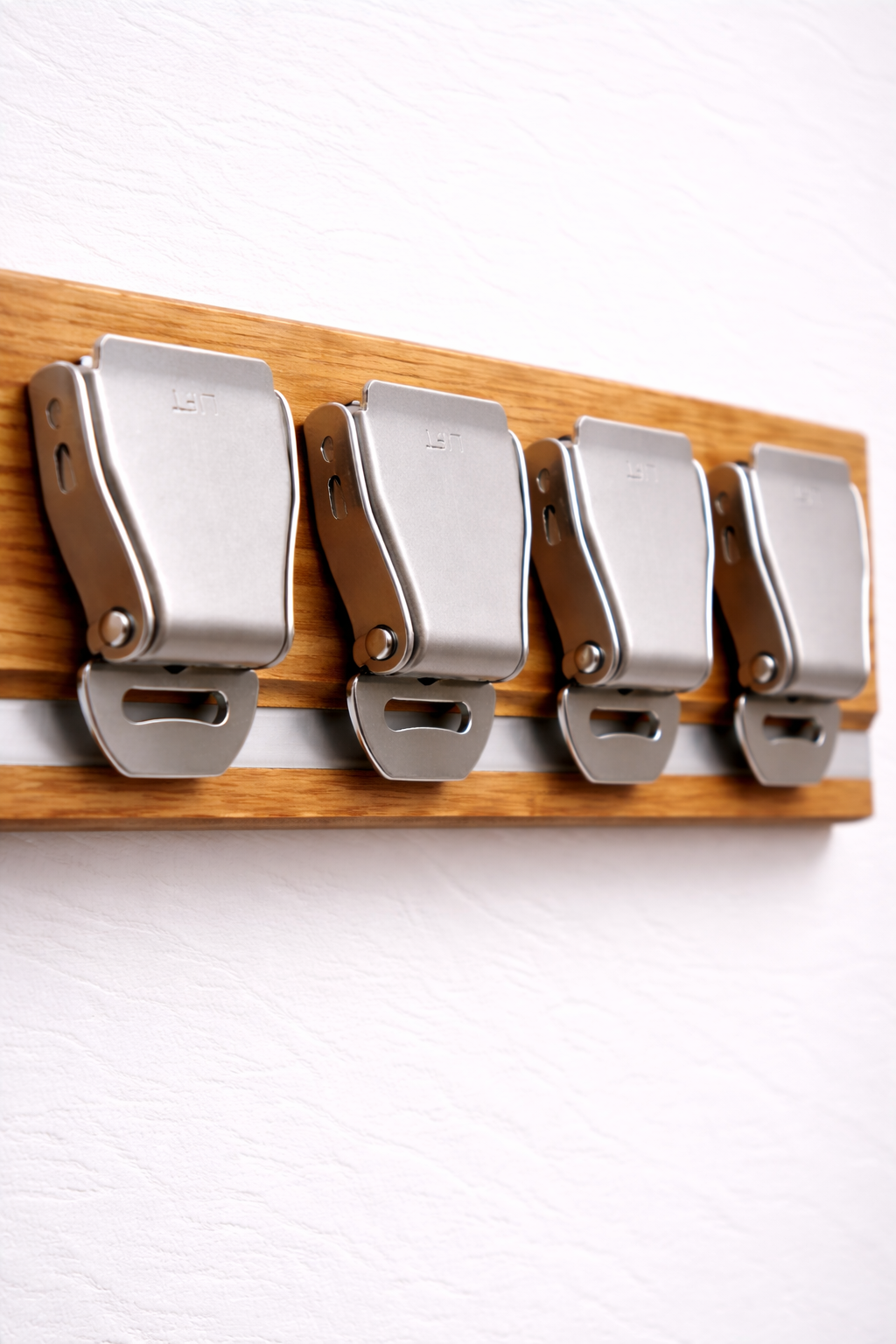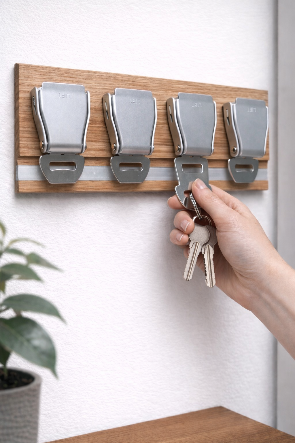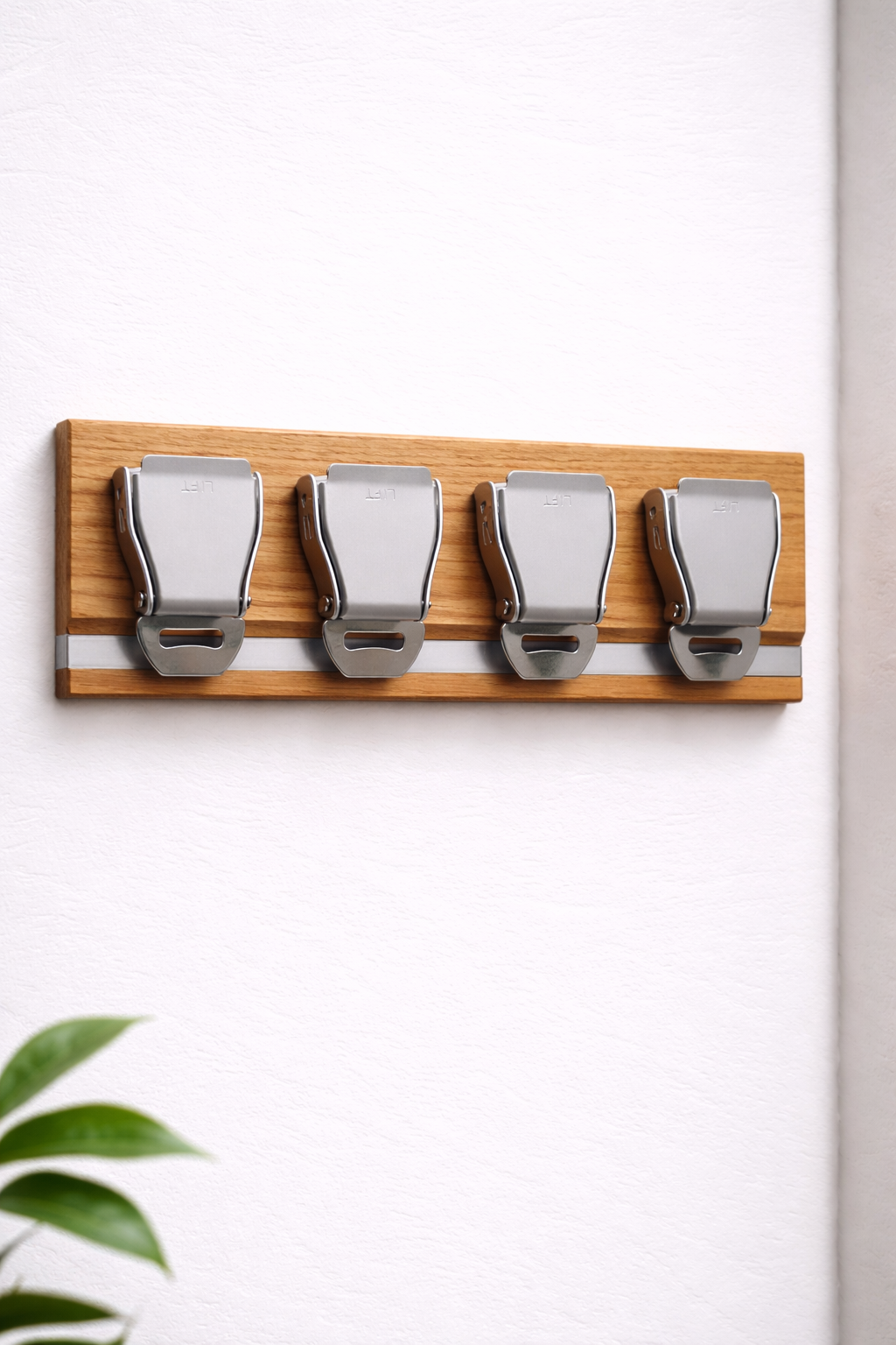 Deine Schlüssel lassen sich ganz einfach ein- und ausklicken – inspiriert vom Look einer Flugzeugschnalle. So verbindet dieses Schlüsselbrett Funktionalität mit einem modernen, außergewöhnlichen Design.